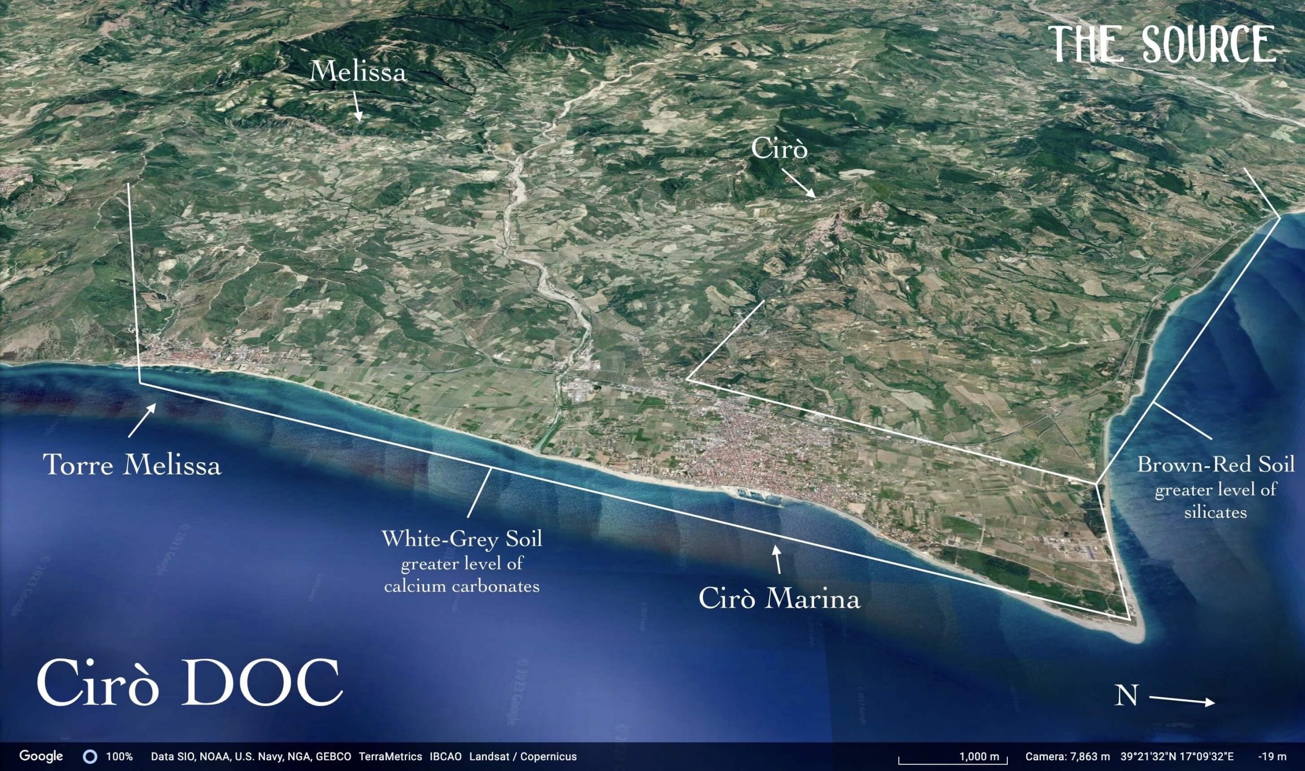 Cirò’s vineyards grow on geological depositions from the Miocene, Pliocene, and Quaternary, with soils composed primarily of calcareous clay. According to Sergio, clay—not slope or visual drama—is the principal ingredient for high-quality Gaglioppo, especially in the flatter areas near the sea, such as the Lipuda River delta (see pedological map). Most of Arcuri’s six hectares lie beside the sea, with the highest reaching just 70 meters in altitude.
